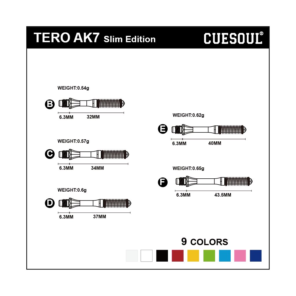 TERO AK7 Slim Dart Shaft – White sú kvalitné šípkové násadky navrhnuté pre hráčov, ktorí uprednostňujú rýchly, presný a kontrolovaný let. Slim profil má menší priemer než štandardné násadky, čím znižuje odpor vzduchu a podporuje priamočiarejší hod. Biele prevedenie pôsobí čisto a profesionálne.