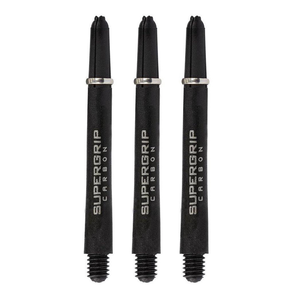 Násadka na šípky, farba čierna si strieborným prsteňom, materiál carbon, závit normál 2BA, set obsahuje 3 ks násadky.