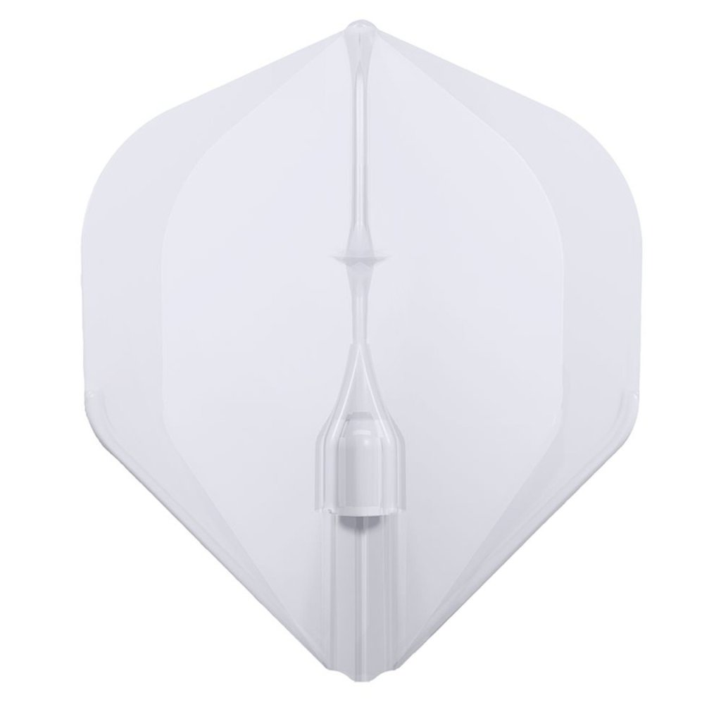 Biele letky L-Style Champagne Integrated EZ L1 Standard so zabudovaným Champagne Ring systémom, rozmermi 36 x 41,7 mm, hrúbkou 0,3 mm a hmotnosťou 0,5 g pre stabilný oblúkový let.