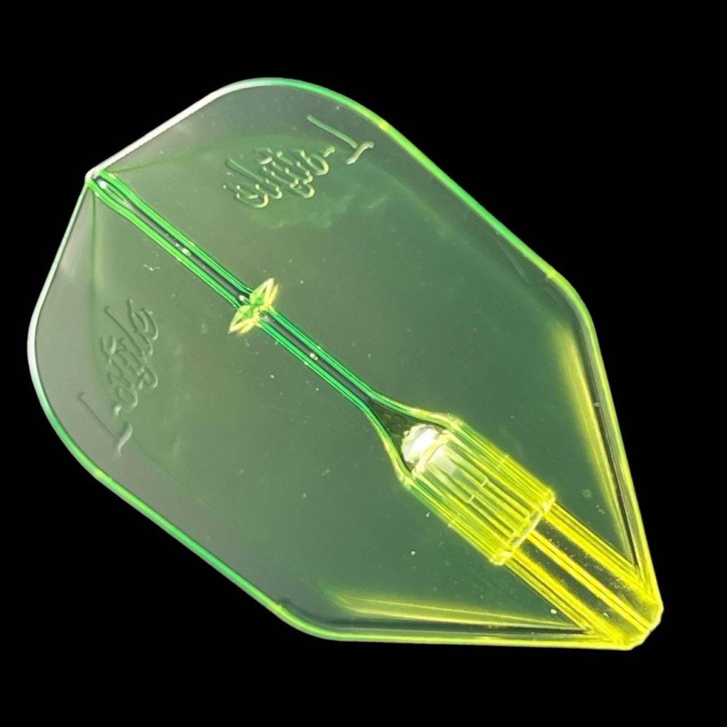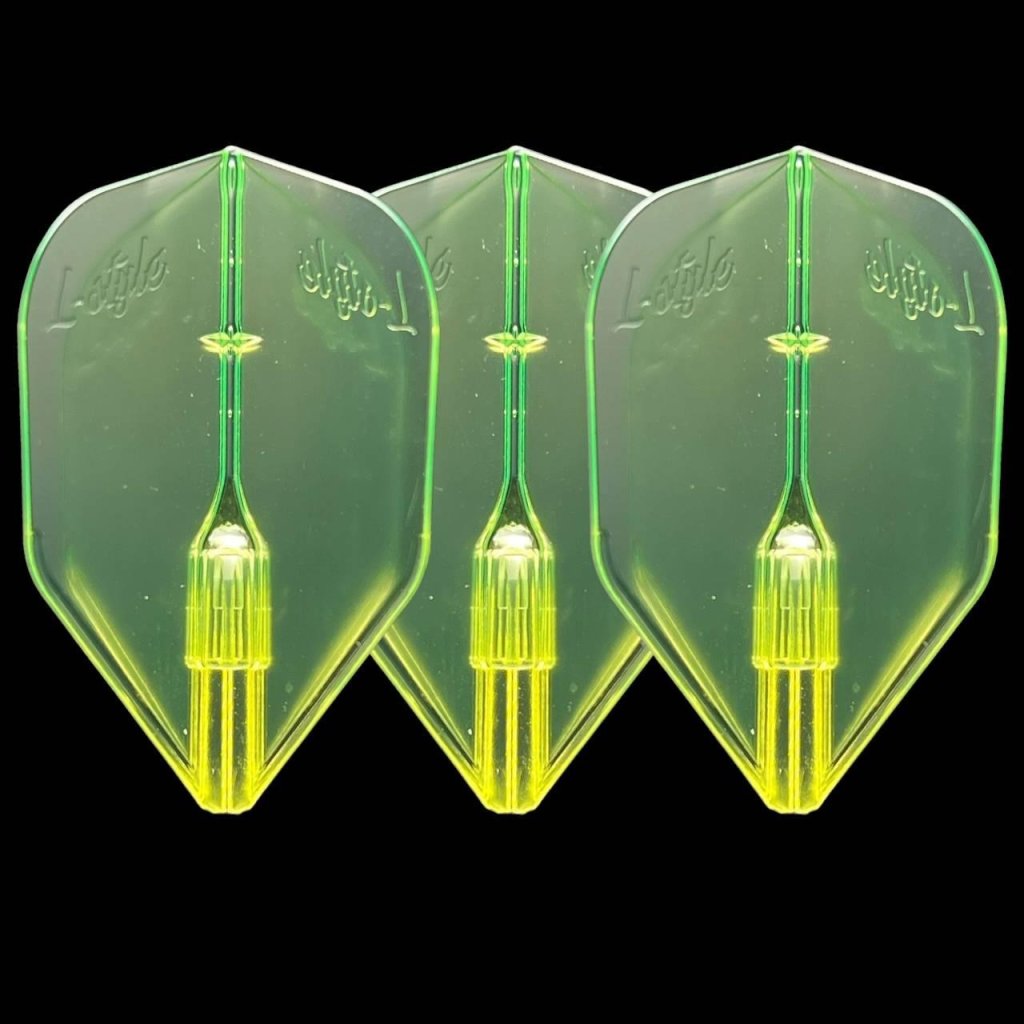 Neonovo žlté letky L-Style Champagne Integrated EZ L3 Fantom Shape so zabudovaným Champagne Ring systémom, 0,3 mm a hmotnosťou 0,5 g pre stabilný oblúkový let.