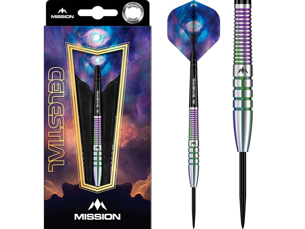 Šípky Mission Celestial 23g, 95% wolfram, 6,7mm x 50mm, exkluzívna koralová PVD povrchová úprava im dodáva luxusný vzhľad