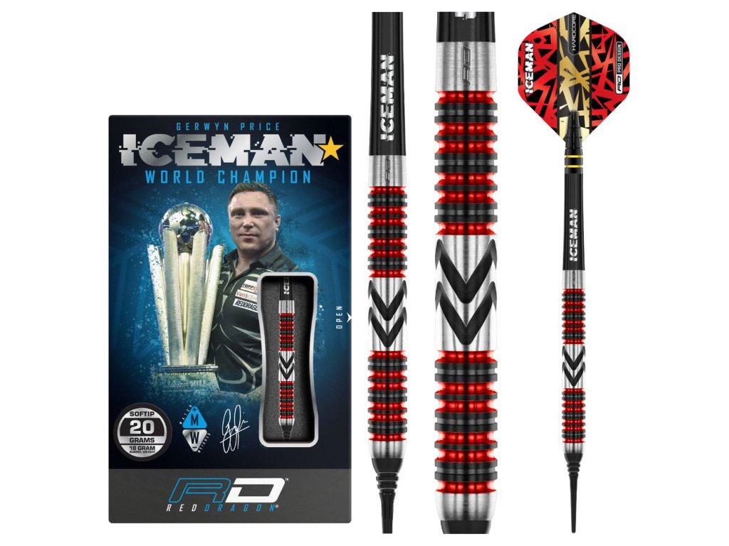 Šípky soft Red Dragon Gerwyn Price Firebird 20g, materiál: 90% wolfram, Hmotnosť: 20g, Rozmery: 6,2mm x 50,8mm, Profesionálna sada.