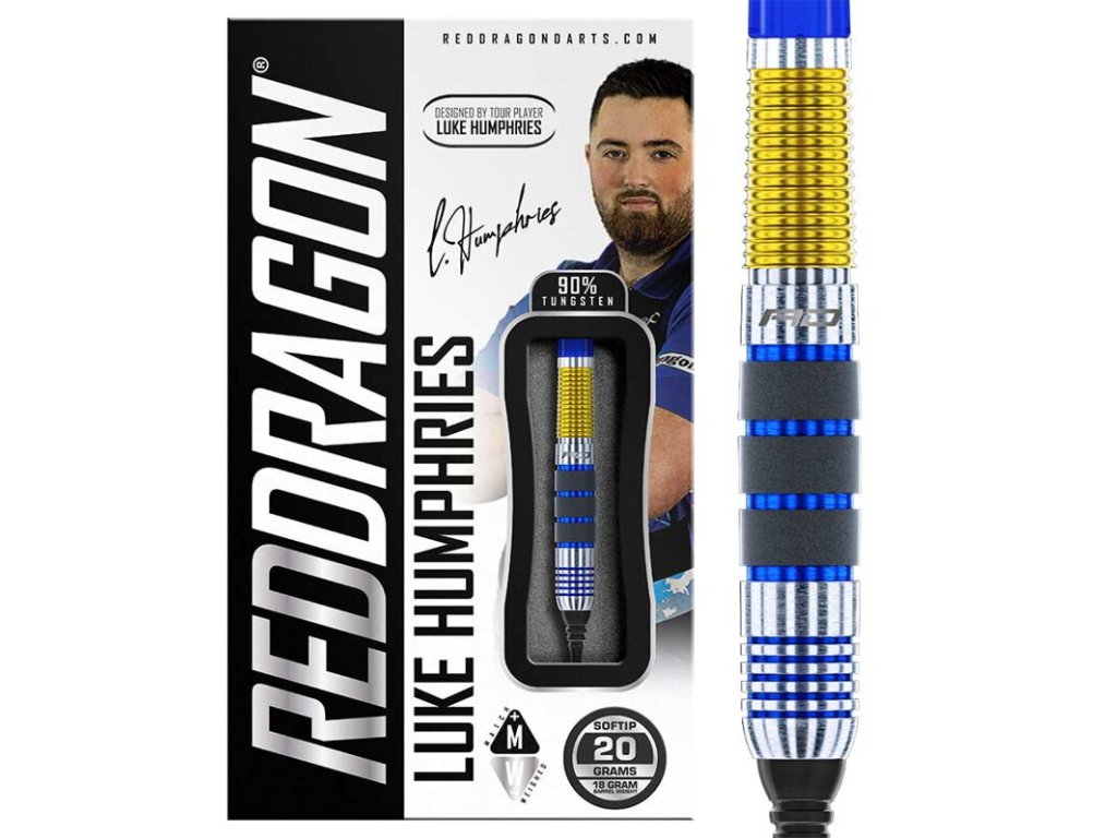 Softové šípky Red Dragon Luke Humphries sú navrhnuté pre hru na elektronických terčoch. Tieto šípky, ktoré sú súčasťou profesionálnej sady Lukea Humphriesa, ponúkajú vynikajúcu presnosť a kvalitu. Ich telíčka sú vyrobené z 90% wolfrámu, čo zabezpečuje vynikajúcu odolnosť a stabilnú letovú dráhu. S hmotnosťou 20 gramov sú tieto šípky ideálne pre hráčov, ktorí uprednostňujú ťažšie modely. Povrch telíčok je leštený s atraktívnymi modrými a zlatými prvkami, čo dodáva šípkam štýlový vzhľad.