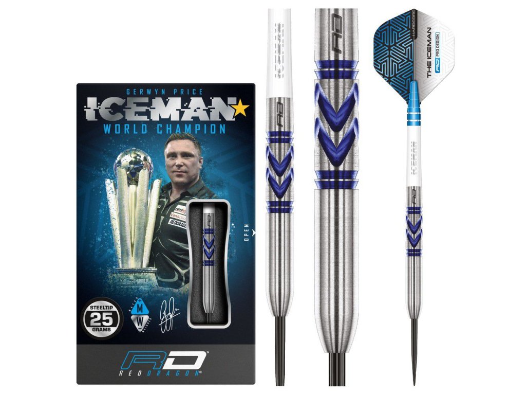 Šípky Red Dragon steel Gerwyn Price Avalanche-Pro 25g, 90% wolfram. Profesionálna sada s technickými údajmi: 6,6 mm hrúbka, 50,8 mm dĺžka, 25g váha. Iceman dizajn s Nitrotech násadkami a Hardcore letkami.