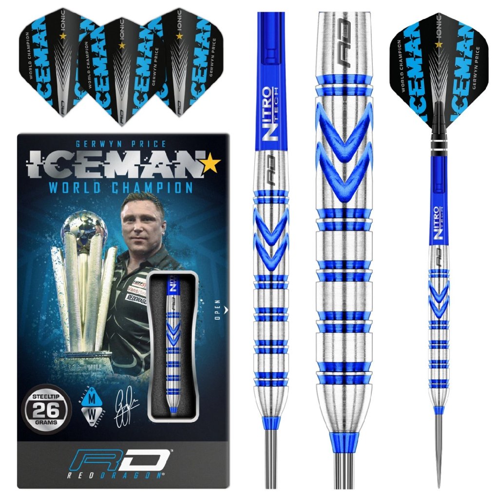 Šípky Red Dragon steel Gerwyn Price sú vyrobené z 90% wolfrámu a majú hmotnosť 26g. Tieto šípky boli neoddeliteľnou súčasťou výbavy Gerwyna Pricea, známeho ako Iceman, počas jeho úspešnej profesionálnej dráhy, ktorá zahŕňala získanie viacerých PDC titulov až po dosiahnutie pozície PDC svetového šampióna. Sada využíva špeciálne upravený dizajn Razor Edge na kritických miestach pre zvýšenie presnosti a štýlu hodu podobného Icemanovi, ktorý je charakteristický vášňou a precíznosťou.