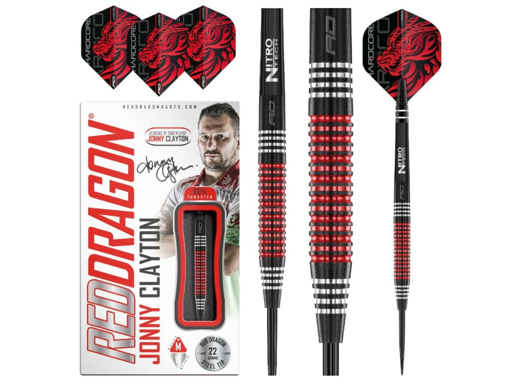 Šípky Red Dragon steel Johnny Clayton S.E. sú vyrobené z 90% wolfrámu a majú hmotnosť 22g. Tieto šípky sú charakteristické svojím unikátnym dizajnom, ktorý zahŕňa čierny PVD povrch doplnený o červené drážky pozdĺž celého tela šípky.
