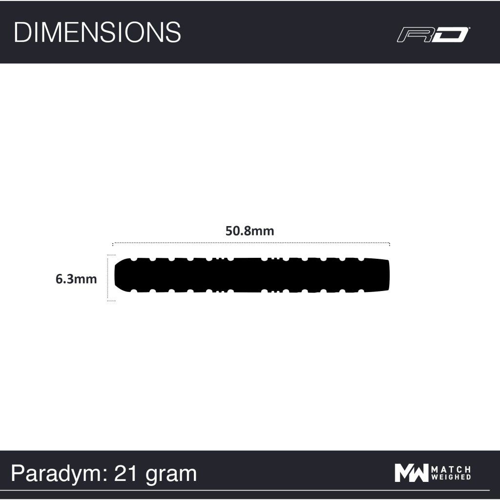 Red Dragon Paradym Parallel 90 % sú moderné steel šípky navrhnuté pre hráčov, ktorí preferujú klasický rovný barrel, stredové vyváženie a konzistentný grip po celej dĺžke. Vďaka obsahu 90 % volfrámu sú barely štíhle, odolné a poskytujú dostatok priestoru pre presný úchop aj tesné zoskupenie šípok v terči.