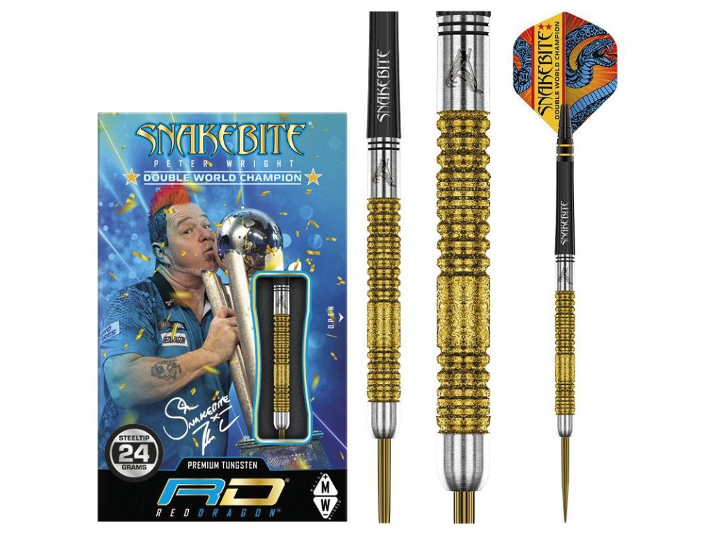 Red Dragon steel šípky Peter Wright Snakebite Double World Champion SE Gold Plus 24g