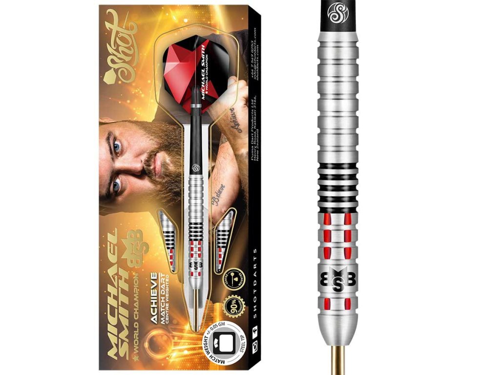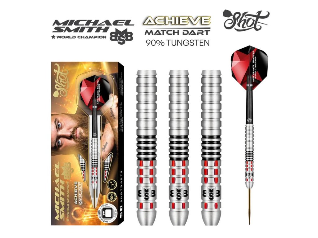 Michael Smith Achieve šípky od značky Shot predstavujú ideálnu voľbu pre pokročilých hráčov. Tieto steel šípky sú navrhnuté pre použitie s sisalovými terčmi a vyznačujú sa pevnými kovovými hrotmi.