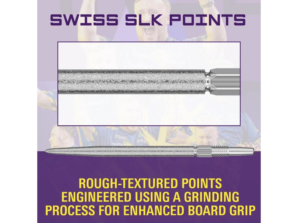 Oceľové hroty Target Swiss Point SLK boli vyvinuté špeciálne pre náročných hráčov, ktorí hľadajú kombináciu spoľahlivosti, priľnavosti a presnosti. Vďaka pokročilému procesu brúsenia majú hroty drsnú textúru, ktorá znižuje odskoky od terča a poskytuje vynikajúcu stabilitu počas hodu.