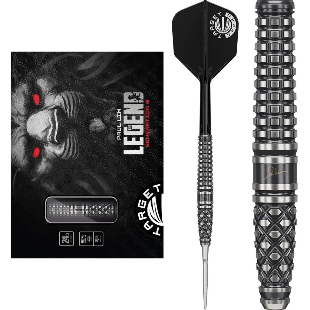 Target Japan Paul Lim The Legend Gen8 90% 24G sú prémiové steel šípky navrhnuté podľa presných požiadaviek legendy šípok Paula Lima. Ponúkajú špičkový grip, výborné vyváženie a Swiss Point technológiu pre maximálnu presnosť a konzistentný výkon.