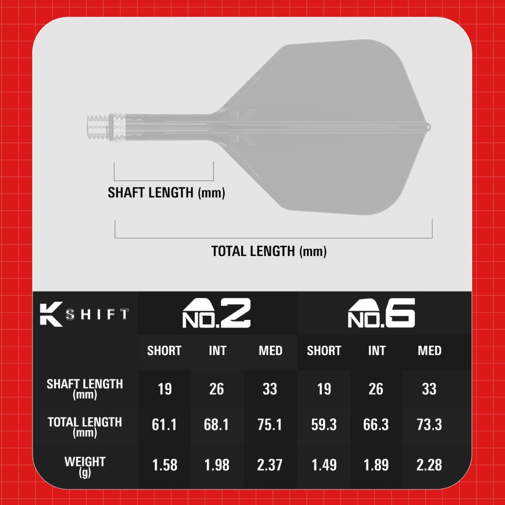 Target K-Shift Black Flight Shape No.6 predstavuje novú generáciu integrovaných letiek a násadiek, navrhnutú na aktívne znižovanie odrazov šípok a zachovanie stabilného nástrelu aj pri tesných zoskupeniach. Systém K-Shift nadväzuje na osvedčenú technológiu K-Flex a prináša kontrolovaný pohyb pri náraze bez negatívneho vplyvu na let šípky.
