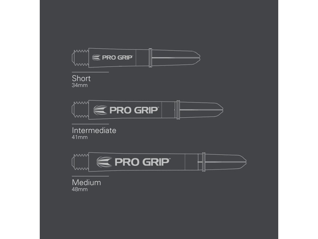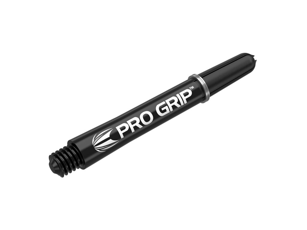 Násadky na šípky TARGET Pro-Grip čiernej farby, vyrobené z plastu s štandardným závitom 2BA.