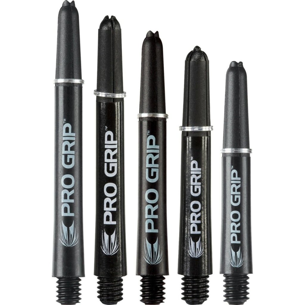Násadky na šípky TARGET Pro-Grip čiernej farby, vyrobené z plastu s štandardným závitom 2BA.