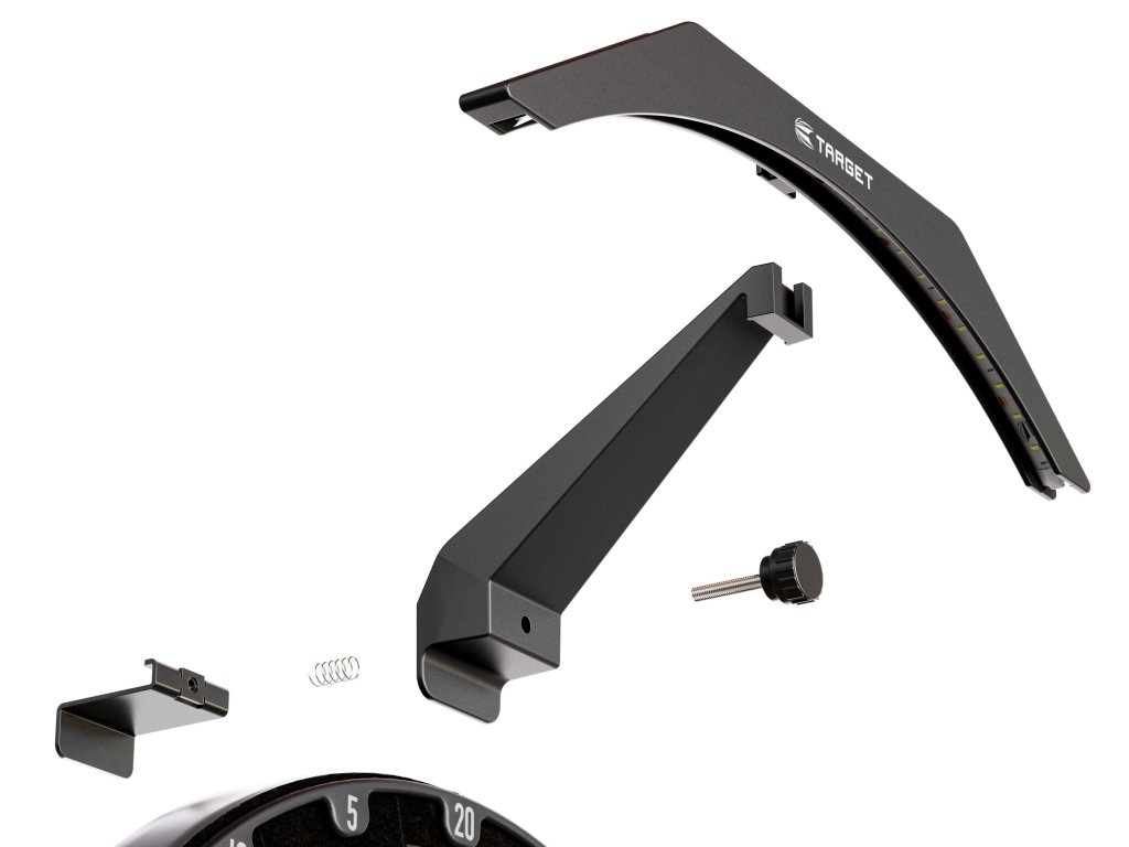 Osvetlenie sisalového terča Target ARC: uľahčuje mierenie, osvetľuje všetky sektory, zlepšuje viditeľnosť.