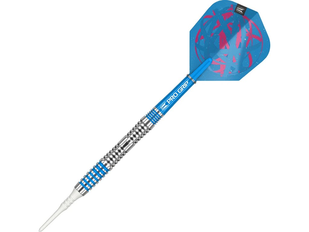 - Wolfrámové telá šípok sú vybavené modrými Pro Grip násadkami, ORB Ultra letkami a bielymi plastovými hrotmi na závit 2BA.