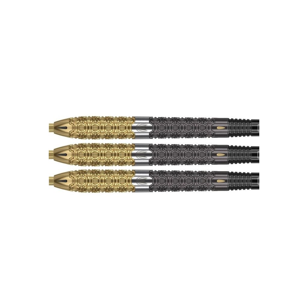 Exkluzívne šípky Target Cult Envy 02 predstavujú špičku v oblasti šípkarského vybavenia, vďaka ich vynikajúcej konštrukcii a dizajnu zameranému na optimalizáciu vašej hry. Tieto šípky, vyrobené z 90% wolfrámu, majú hmotnosť 23g a sú vybavené systémom Swiss point pre ľahkú výmenu hrotov. Ich atraktívny čierno-zlatý dizajn a kompatibilita s sisalovými terčmi z nich robia ideálnu voľbu pre vážnych hráčov šípok.