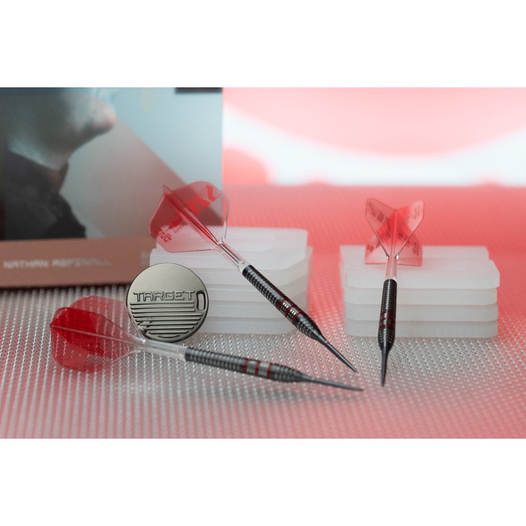 Šípky Target Nathan Aspinall 95K Player Edition vznikli v úzkej spolupráci s víťazom World Matchplay 2023 a hviezdou Premier League – Nathanom Aspinallom. Táto profesionálna edícia je navrhnutá pre maximálnu presnosť, silu a konzistentný výkon, pričom odráža intenzitu a súťaživosť samotného hráča.