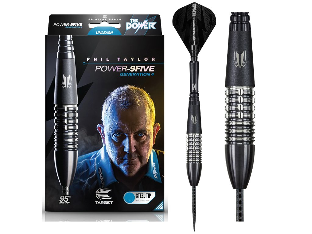 Šípky Phil Taylor Power 9Five Generation 4 od spoločnosti Target Darts. každé telíčko je ručne pieskované len v zadnej časti telíčka, pričom sa používajú extrémne jemné častice na vytvorenie výraznej matnej štruktúry. Celé telíčko je potom prekryté mimoriadne tvrdou čiernou vrstvou nitridu titánu, ktorá poskytuje dlhotrvajúcu ochranu telíčka. Tým sa dosiahne kontrastný vzhľad a pocit medzi precízne pieskovanou časťou a zvyškom telíčka.