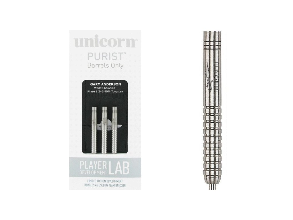 Telíčka na šípky Unicorn steel Purist PDL. Phase 1 22g, 90% wolfram. Rozmery barrelu 52,32 mm a hrúbka 6,1 mm.