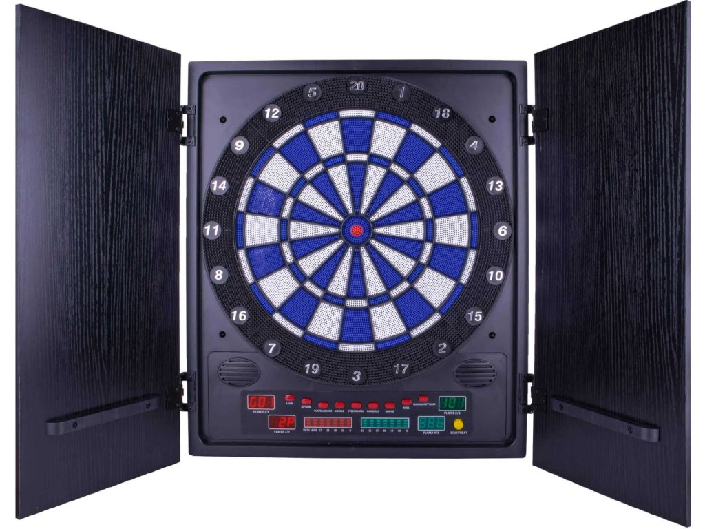 Dvierka, ktoré slúžia ako ochrana terča, keď sa zrovna nehrá, môžete využiť aj ako úložisko pre 4 sady šípok. Aby vám zábava s elektronickým terčom AP-500 dlho vydržala, čaká na vás 27 rôznych hier v celkom 202 rôznych variáciách.