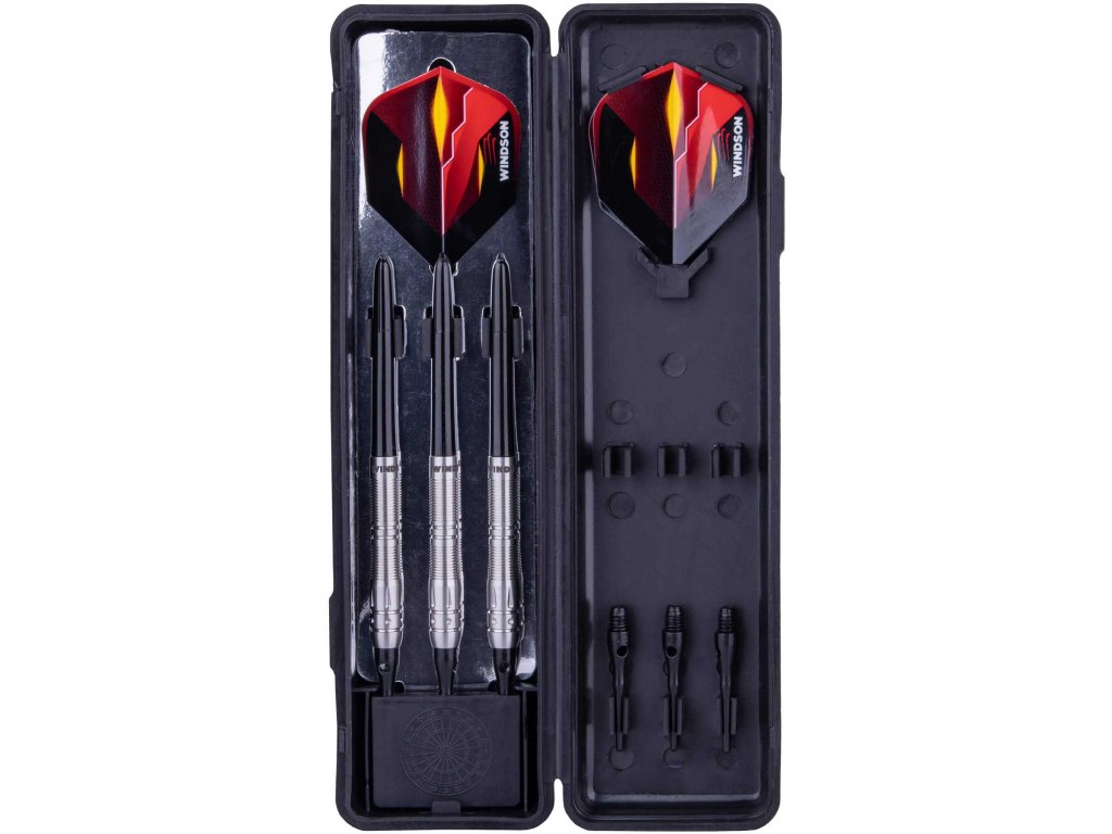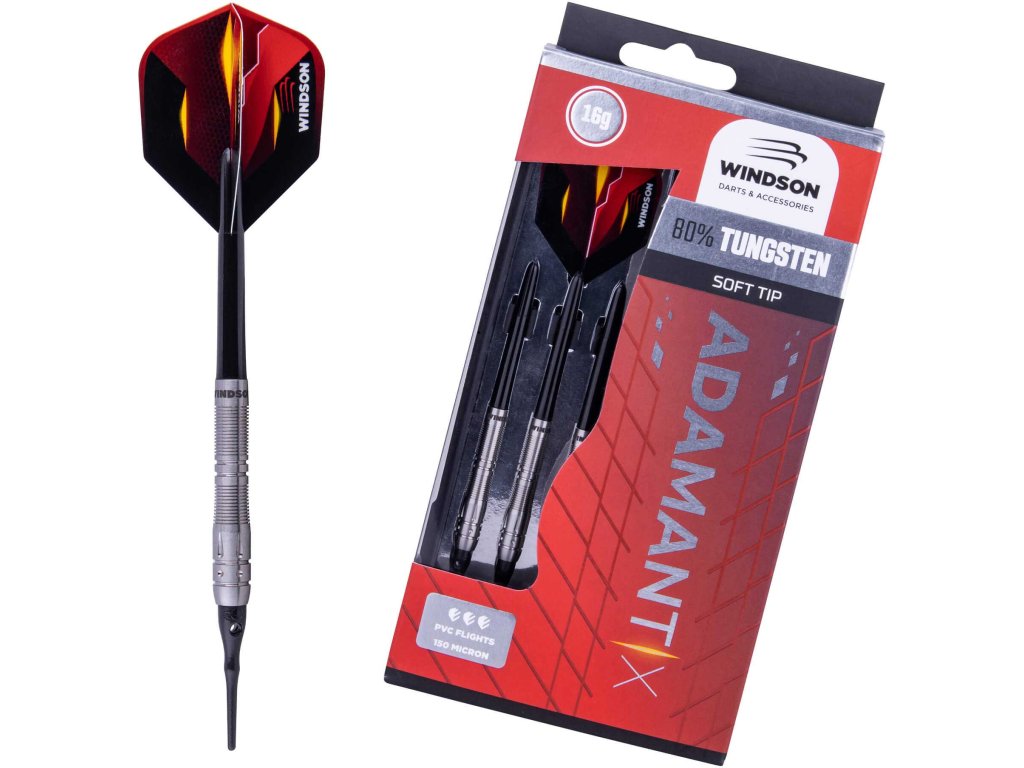 S šípkami ADAMANTIX budete mať pri hre istotu! S výbornou kombináciou kvalitného dizajnu a prvotriednych materiálov vám tieto šípky poskytnú presnosť a stabilitu, ktorú potrebujete pre dosiahnutie vynikajúceho výkonu. Šípky majú moderný tmavý čierno-červený dizajn, ktorý okamžite upúta vašu pozornosť. Strieborný barel z 80% wolframu dáva šípkam ešte väčšiu eleganciu a štýl. Každá šípka je opatrená mäkkým hrotom pre hru na plastových terčoch. Vďaka 14g telu z 80% wolframu sú tieto šípky pevné a odolné. Čierne nylonové násadky podčiarkujú temný tón šípky. Letky z PVC majú hrúbku 150 mikrónov, poskytujú nielen dokonalú trajektóriu letu, ale aj výrazne väčšiu životnosť vďaka svojej pevnosti. Celková váha každej šípky je 16g, čo znamená, že tieto šípky ponúkajú skvelú rovnováhu a ľahké ovládanie pri hre.