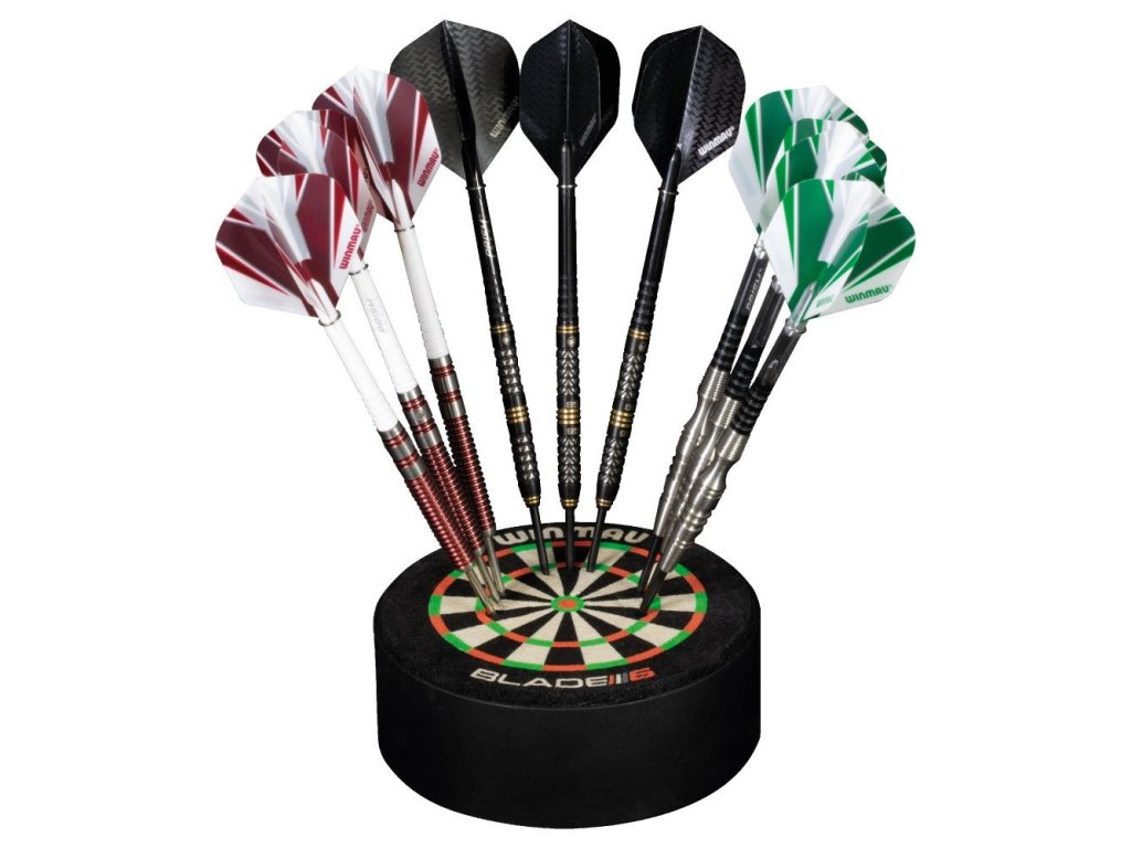 Kompaktný nosič šípok s vzhľadom sisalového cieľa Blade 6 je ideálny pre použitie s mäkkými aj oceľovými šípkami. Podrobnosti sú uvedené nižšie.