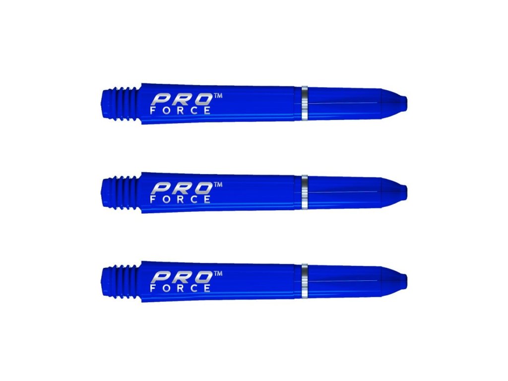 Násadka na šípky s pružným uzamykacím systémom s krúžkami, modrá farba, plastový materiál od výrobcu Winmau, set obsahuje 3 kusy násadiek Winmau Pro Force modré.