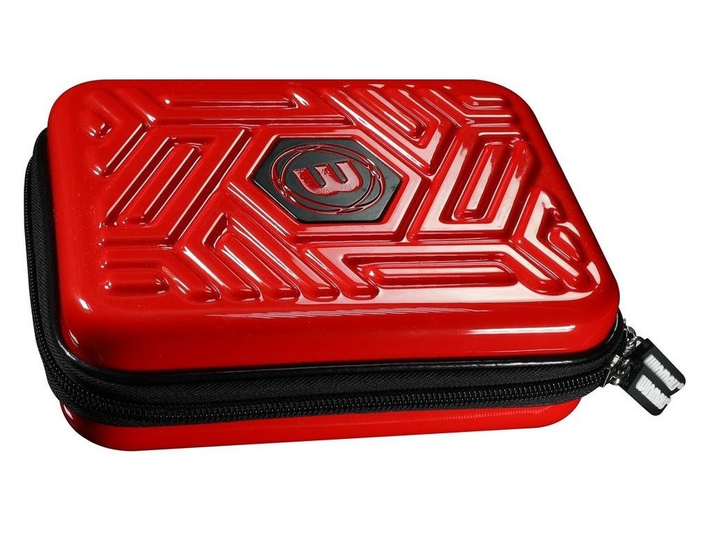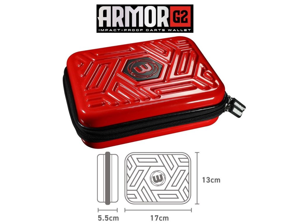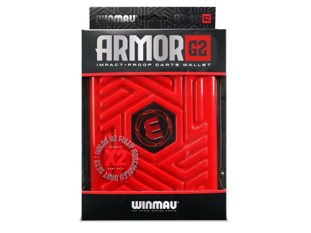 Moderné pevné púzdro Winmau Armor G2 v červenej farbe poskytuje priestor pre dve sady zložených šípok bez potreby skladania letiek