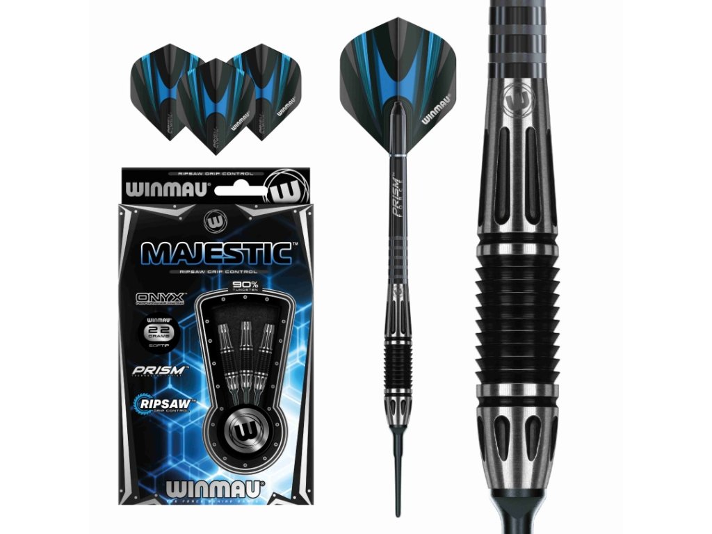 Táto profesionálna sada soft šípok Winmau Majestic, ktorá váži 20g a obsahuje 90% wolfram, je ideálna pre hráčov hľadajúcich vysokú kvalitu. Súčasťou sú vymeniteľné plastové hroty, čo umožňuje ich použitie na elektronické terče. Pre tých, ktorí preferujú tradičné sisalové terče, je možné použiť konverzné kovové hroty.