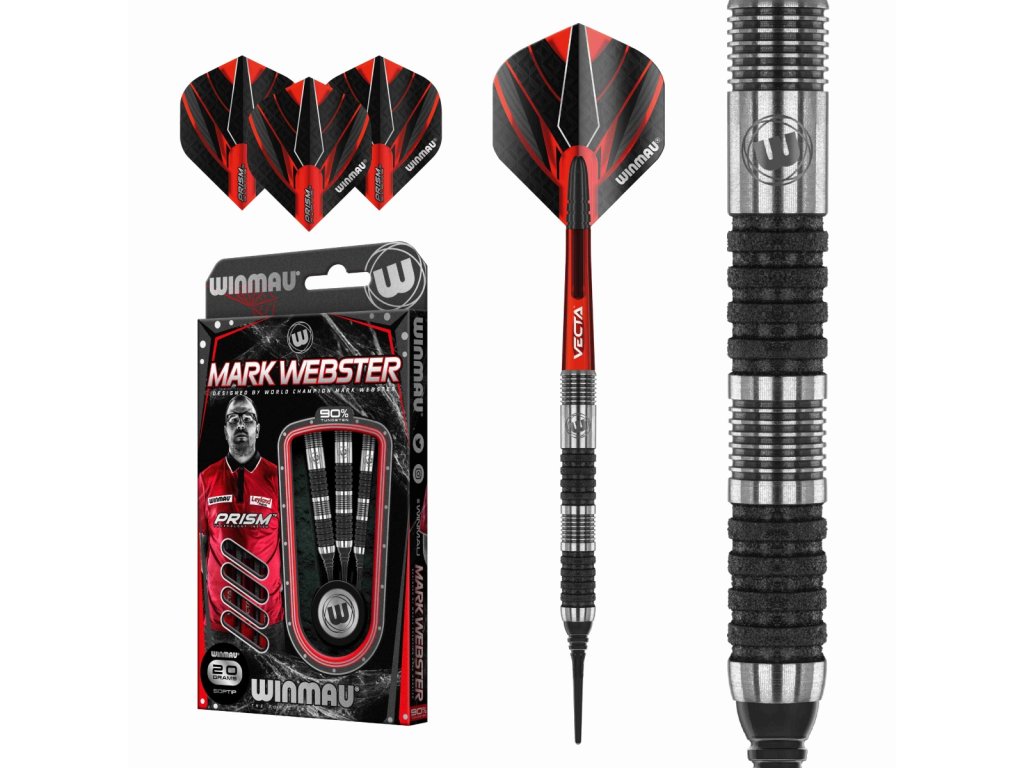 Šípky Winmau soft Mark Webster 20g, 90% wolfram. Profesionálne šípky s diamantovým úchopom, hmotnosť 20g, 90% wolfram, s násadkami Vecta a letkami Prism Alpha.