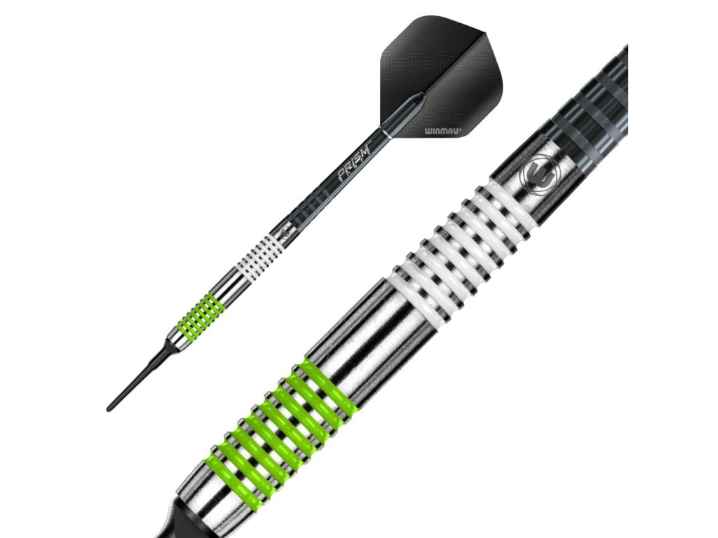 Winmau Ton Machine Soft Darts sú ideálne pre hráčov so skúsenosťami. Tieto softové šípky, vybavené vymeniteľnými plastovými hrotmi, sú primárne navrhnuté pre hru na elektronických terčoch. Pre hru na sisalových terčoch je možné použiť konverzné kovové hroty. Šípky sú vyrobené z 80% wolfrámu, vážia 18g a majú špecifikácie s priemerom 6,6 mm a dĺžkou 43,2 mm. Komplet je obohatený o násadky Prism Force a letky Prism Delta.