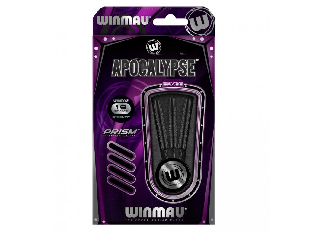 Winmau Apocalypse šípky sú ideálne pre nováčikov v šípkach. Tieto steel šípky, vybavené pevnými kovovými hrotmi, sú špeciálne navrhnuté pre použitie s sisalovými terčmi. Každá šípka váži 19 gramov a je vyrobená z čierneho medi s pravidelnými drážkami, meria 8 mm v priemere a 55,88 mm na dĺžku. Komplet je obohatený o Prism násadky a Prism Alpha letky v štandardnom dizajne.