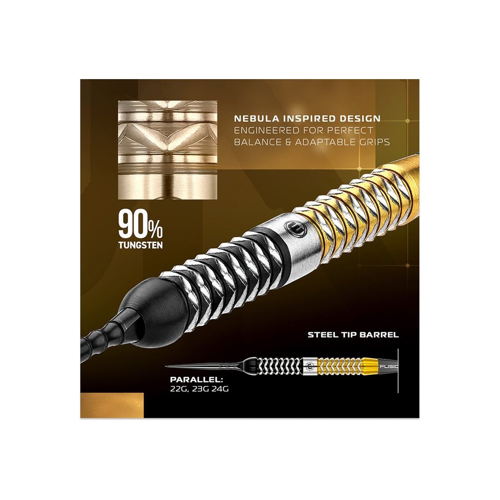 EXION PARALLEL DARTS sú steel šípky s rovným (parallel) tvarom barelu, navrhnuté pre stabilný a konzistentný hod. Dostupné v hmotnostiach 23 g a 24 g, vhodné pre hráčov, ktorí preferujú istý úchop a vyvážený herný prejav.