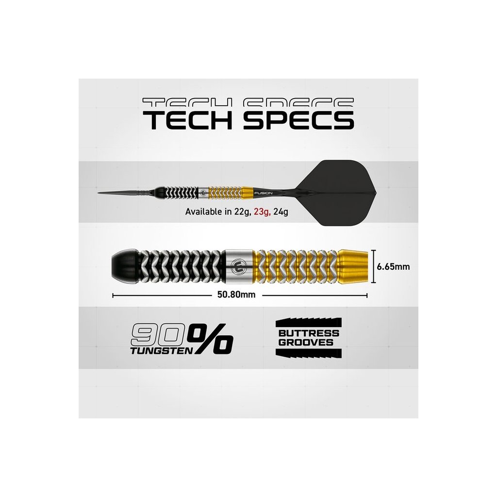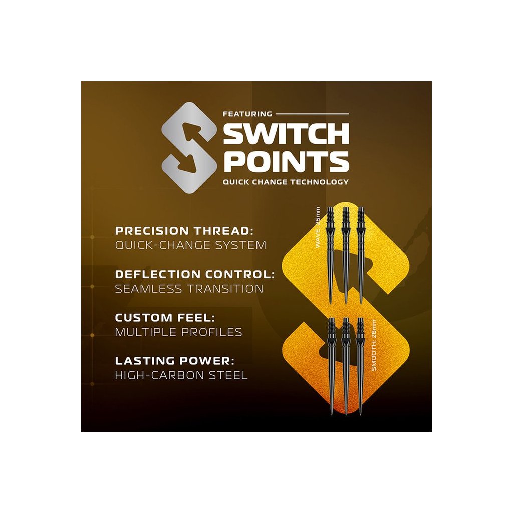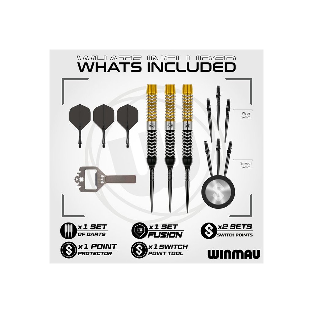 Vyvážená konštrukcia podporuje plynulý let šípky a spoľahlivé správanie v terči. Hmotnosti 23 g a 24 g sú vhodné pre stredne silný až silnejší hod.