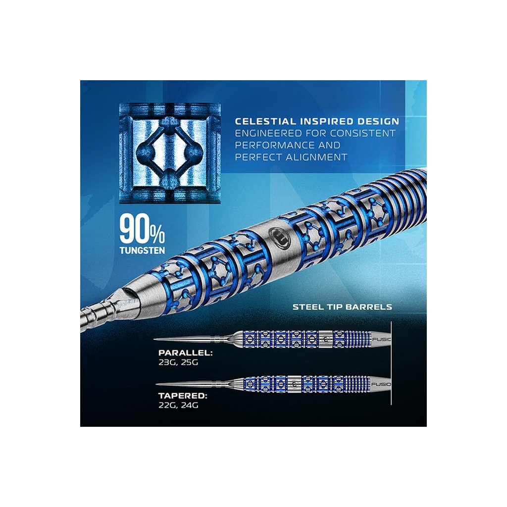 LUNARIS PARALLEL 25G DARTS sú steel šípky s rovným (parallel) tvarom barelu, určené pre maximálnu stabilitu, konzistentný úchop a presný hod. Vyššia hmotnosť 25 g je ideálna pre hráčov so silnejším herným prejavom.