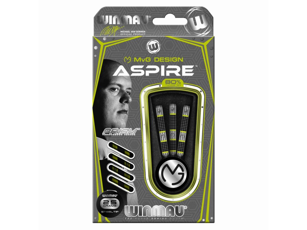 Winmau steel šípky MvG Aspire 25g, 80% wolfram, 6,8 mm priemer, 50,8 mm dĺžka, zelené násadky MvG Design Nylon, MvG Prism Delta letky.