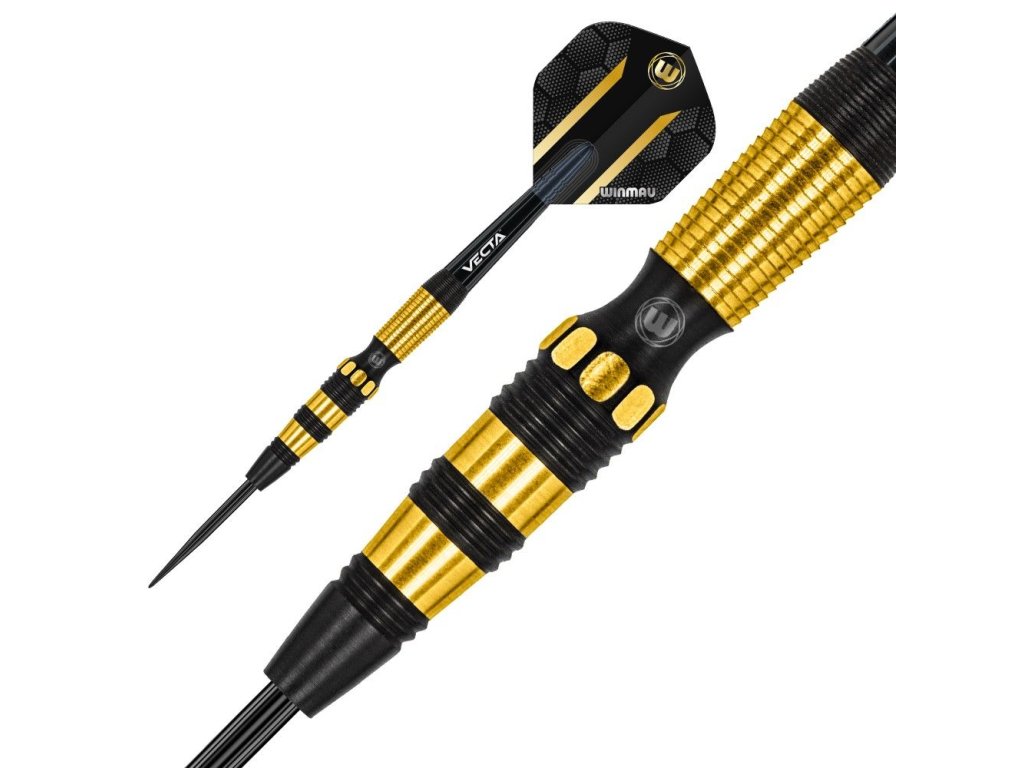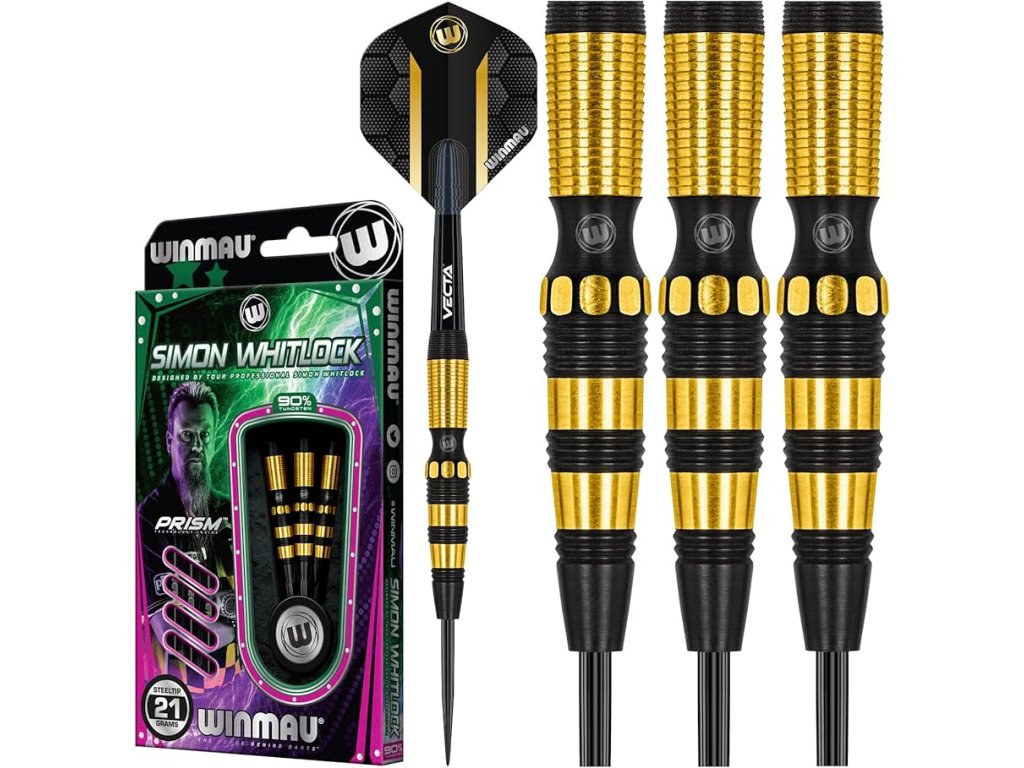 Steel šípky Winmau Simon Whitlock Dynamic SE 23g, 90% wolfram, vhodné pre profesionálnych hráčov, čierny dizajn s detailmi z 24-karátového zlata.