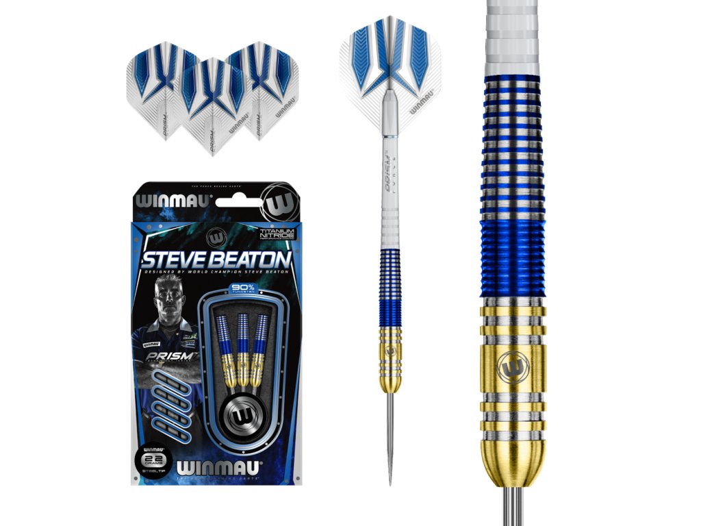 Profesionálne steel šípky Steve Beaton SE od Winmau, 24g, 90% wolfram, 7,35mm priemer, 43,2mm dĺžka, Prism Force násadky, Prism Delta letky.