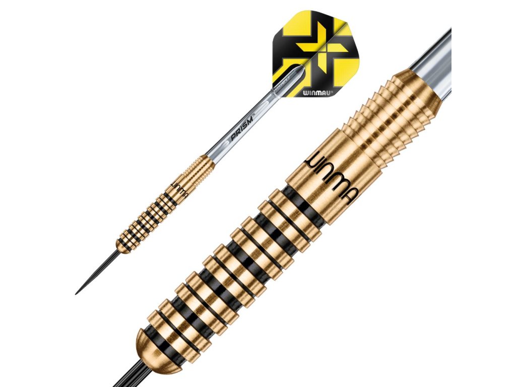Winmau steel XTREME BRASS 2, 22g. Steel šípky s 22g medenými telíčkami, priemer 8,8 mm, dĺžka 53,3 mm, s Prism a Alpha Standard letkami. Ideálne pre začínajúcich hráčov.